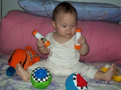 小天使今天一直拿著小瓶的Vemma不放,媽咪最討厭了,一直搶小天使的果汁啦~~~
